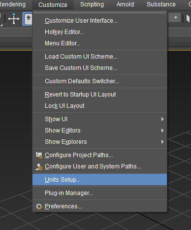 - В главном меню выбираем «Customize» → «Units Setup»: